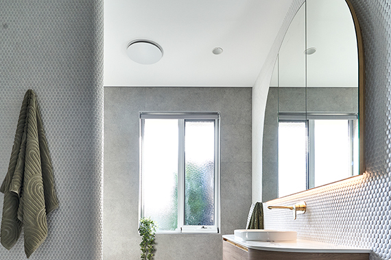 On the practical side, Schwarz recognised the need to remove excess moisture from the space to deter mould growth and achieve a healthy, low-maintenance bathroom environment. After extensive research, she selected the whisper-quiet Fanco Hydrid exhaust fan with its sleek modern styling, combined with generous cross-ventilation to protect this stunning bathroom upgrade for years to come.