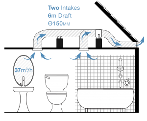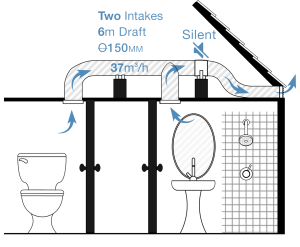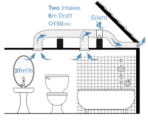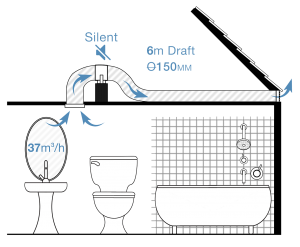 We stock the following Fanco DIY kits to suit different sized spaces so they include the appropriate lengths of duct and accessories. Click on the relevant product listing to view the exact contents of the kit, the specifications of the fan and all other relevant information. On each of the listings there is a simple graphic like shown below that helps visualise what type of area and vent size you need. There are also options of silent in line fans. The kits are intended as a “do it yourself” and the fan can be plugged in to an available power point in the roof space, (connected to a switch in the room). This is usually available in bathrooms, toilets and the like or an electrician could install it independent of the system installation.