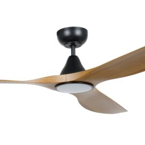 Eglo Surf DC Ceiling Fan with LED Light – Black with Burmese Teak Blades 60″