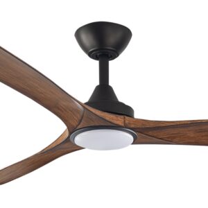 Domus Strike DC Ceiling Fan with LED Light – Black with Walnut Blades 60