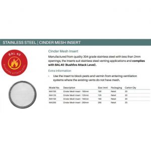 Stainless Steel Hood Vent with Cinder Mesh – 150mm