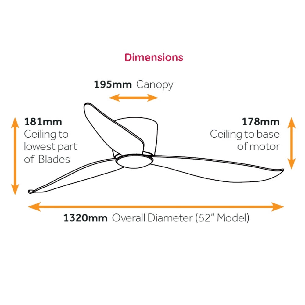 | Ceiling to Blade Drop | 181mm (178mm to base of motor) |
