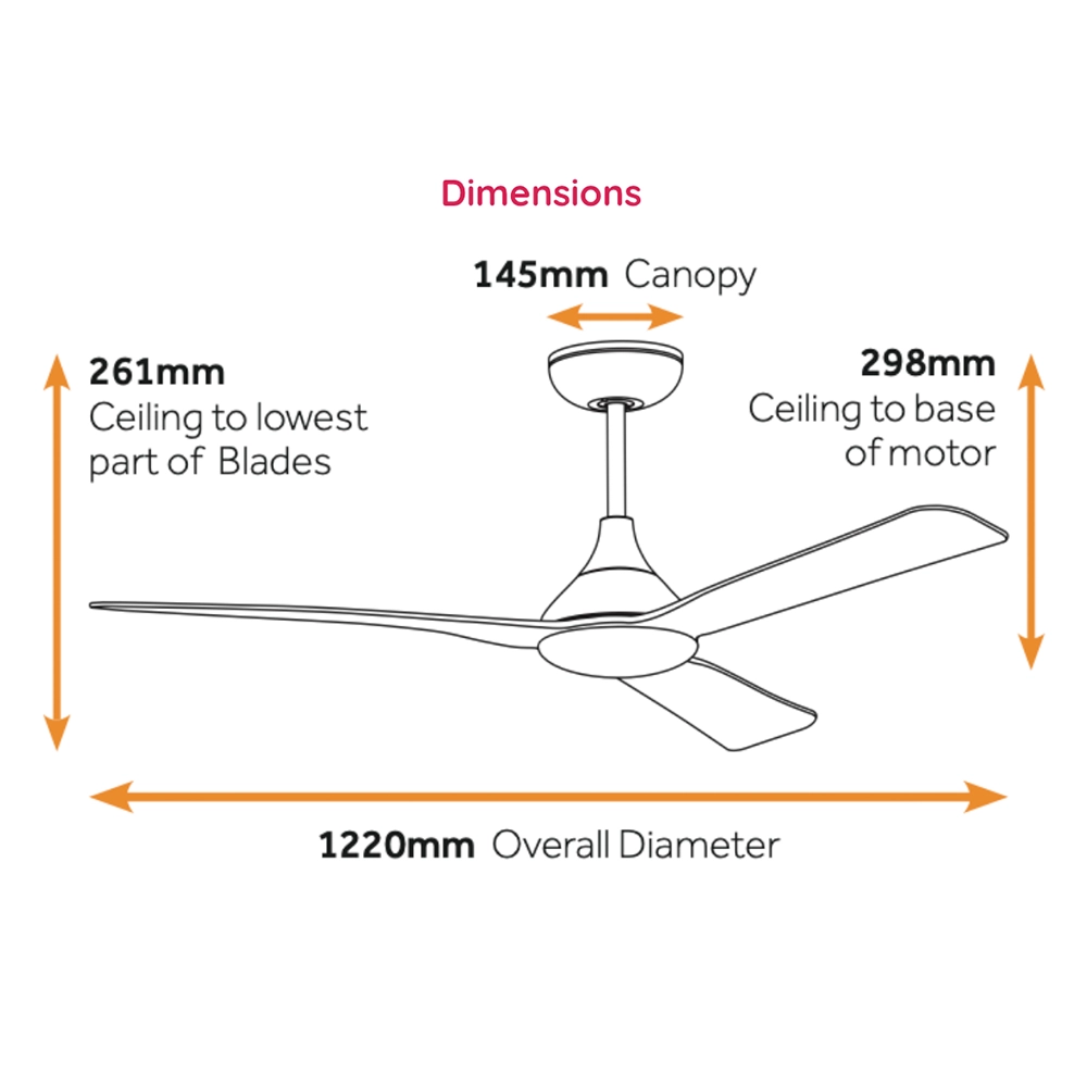 | Ceiling to Blade Drop | 261mm (298mm to base of motor) |