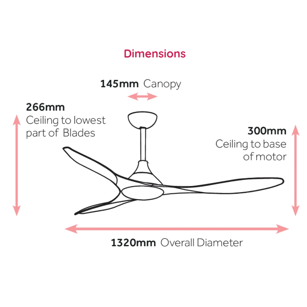 | Ceiling to Blade Drop | 266mm (300mm to base of motor) |