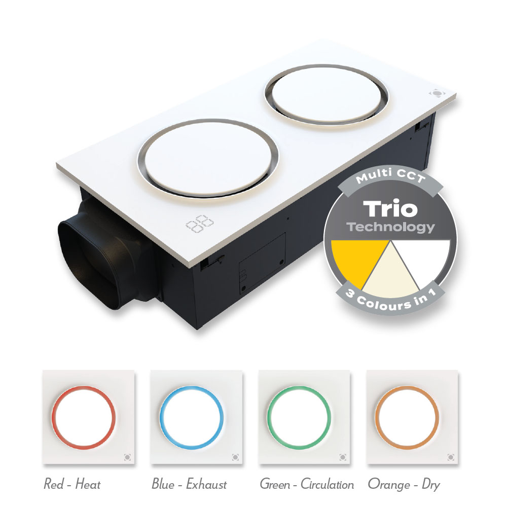 Elevate your bathroom experience with the Domus Infinity, a sleek and fully integrated ceiling unit that combines heating, ventilation, air circulation, and lighting, all in one premium system.