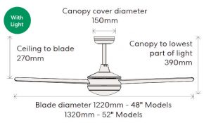| Ceiling to Blade Drop | 270mm (390mm to base of light) |