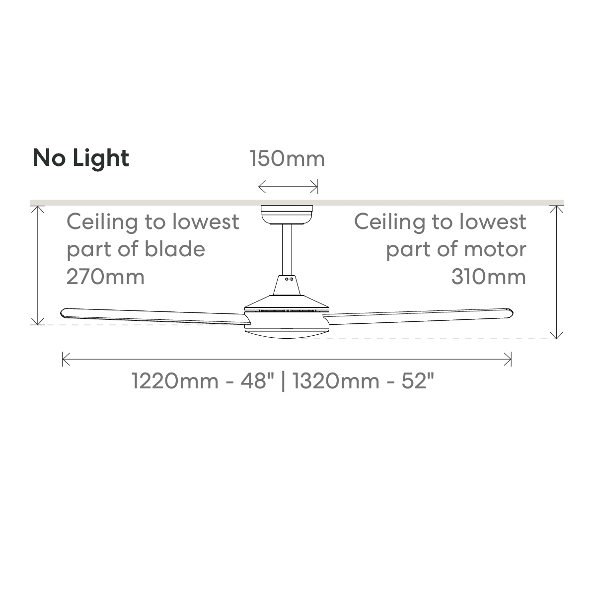 | Ceiling to Blade Drop | 270mm (310mm to base of motor) |