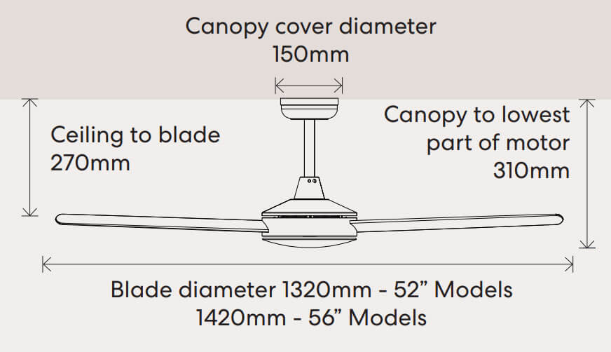 | Ceiling to Blade Drop | 270mm (310mm to base of motor) |