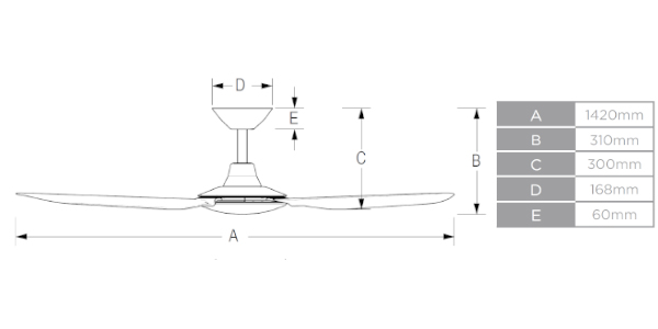 | Ceiling to Blade Drop | 300mm (310mm from base to motor) |