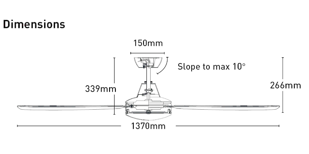 | Ceiling to Blade Drop | 266mm (339mm to base of light) |