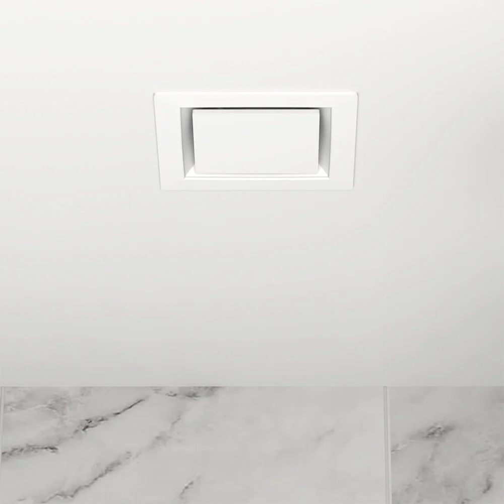 A low-profile ceiling diffuser designed for supply and exhaust air in inline ventilation systems. Features a matte white finish, integrated non-return and volume control damper, and an internal cone for even air distribution and noise reduction. Made from durable ABS plastic with snap-in clips for quick installation and easy maintenance. Also functions as an access panel. Compatible with 150mm flexible duct.