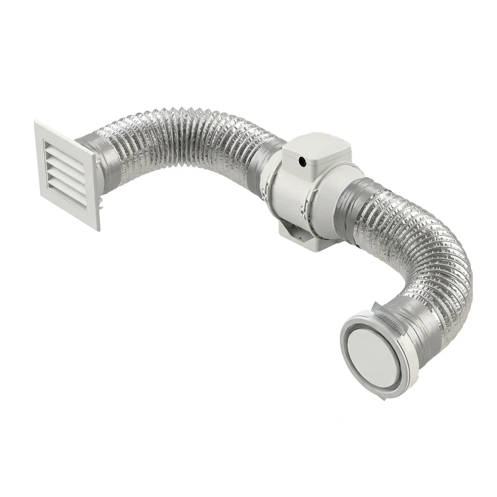 This all-in-one kit comes with a high airflow inline fan for roof space installation, a stylish round frameless vent, an external eave vent, and flexible ducting to link it all together. It also includes a backdraft shutter to prevent warm air from escaping and cold air from entering the house.