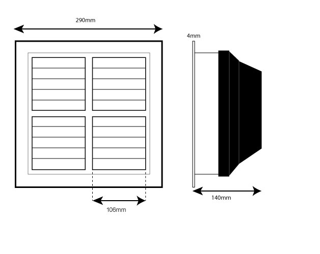 This plastic vent is suitable for air conditioning systems. Each of the four sections has adjustable shutters which can be set to the ideal angle. The rear boot clips into the vent to allow connection to ducting.
