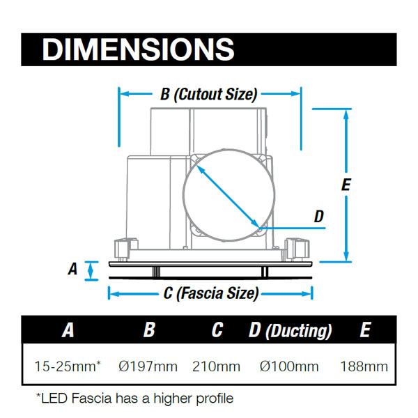 The Ventair Airbus exhaust fan is a high capacity fan for ceiling installation. The Airbus features a ball-bearing motor for long-life, is ductable and includes a built-in back-draft shutter. This ceiling exhaust fan comes with a lead and plug included for easy installation for connection to a power socket.