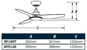 | Ceiling to Blade Measurement | 341mm to base of motor |